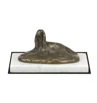 Afghanischer Windhund, Afghane - Hundestatue, Figur auf weißem Marmor, Trophäe für die Art-Dog-Hundeaustellung
