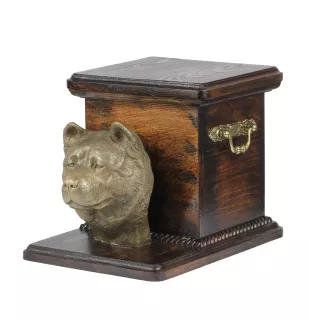 Akita, Akita Inu - Eine Urne für die Asche eines Hundes mit einer Statuette, eine elegante Urne für einen Hund, eine außergewöhnliche Urne mit dem Porträt eines Hundes von der Marke Art-Dog.