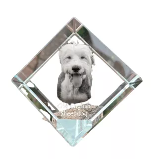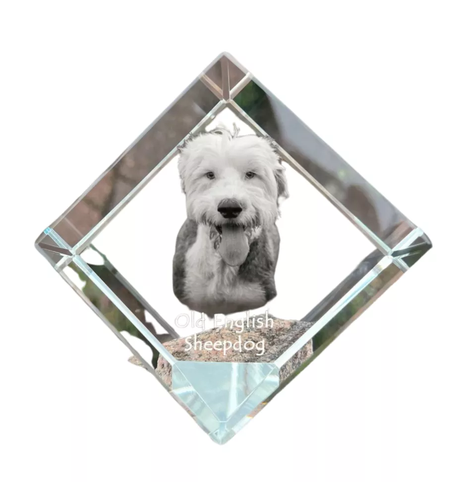 Old English Sheepdog - Kristallwürfel mit Bild, Pferdebild im Kristall, sechseckiger Papierclip der Marke Art-Dog