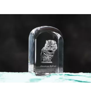 Amerikanisch Bobtail - Kristallwürfel mit Bild, Katzenbild im Kristall, sechseckiger Papierclip von der Marke Art-Dog