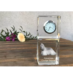 Amerikanischer Cocker Spaniel, American Cocker Spaniel - Kristalluhr mit Foto, Hundebild im Kristall, personalisierte Schreibtischuhr von Art-Dog.