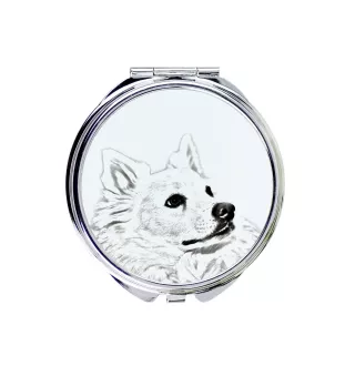 American Eskimo Dog, American Spitz, Eskie - Taschenspiegel mit Hund, personalisierter Taschenspiegel, kompakter Spiegel mit Art-Dog-Logo