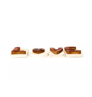 Die aus massivem Holz handgefertigten Buchstaben bilden das Wort LOVE. Jeden Buchstaben können Sie einzeln auf Ihrem Regal oder Bücherregal platzieren (die Buchstaben haben keine Befestigung zum Aufhängen an der Wand). Der Buchstabe O ist mit einer wunderschönen, versilberten Flachreliefverzierung eines reinrassigen Hundes verziert - es stehen über 100 Hunderassen zur Auswahl.