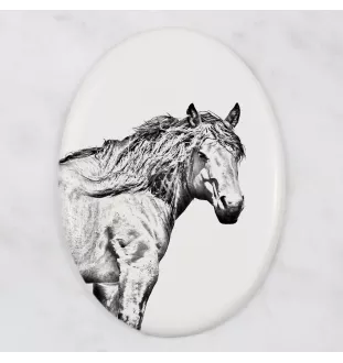 Baskisches Bergpferd - Gedenktafel mit einem Pferdefoto, Grabplatte mit Druck, personalisierte ovale Platte von Art-Dog.