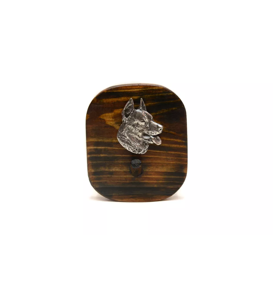 Wir präsentieren Ihnen einen einzigartigen Holz-Wandhaken mit einem Hundemotiv - handgefertigt und einzigartig als dekoratives Element, das Ihrem Interieur Eleganz und Praktikabilität verleiht. Hergestellt aus Kiefernholz, ist der Haken mit einer versilberten Flachrelief-Verzierung eines Hundes verziert, die sich durch Präzision und kunstvolle Ausführung auszeichnet. Er kann als herkömmlicher Kleiderhaken dienen, ideal für Leinen und Zubehör für Hunde sowie für auf Hundeausstellungen gewonnene Medaillen oder Schlüssel. Seine vielseitige Anwendung und elegantes Design machen ihn zu einem perfekten Geschenk für jeden Hundefreund!