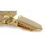 Liebhabern eleganter Accessoires und Hundefreunden wird sicherlich unsere vergoldete Brosche mit Clip gefallen, ideal zum Präsentieren der Startnummer bei Sportveranstaltungen oder Hundeausstellungen. Diese einzigartige Brosche mit realistischem Bild eines Rassehundes ist nicht nur ein praktisches, sondern auch ein stilvolles Accessoire.