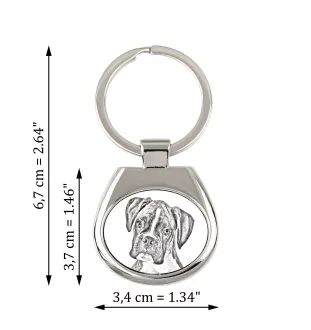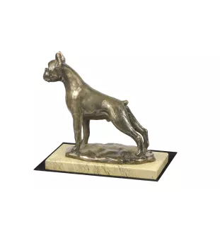 Boxer, Deutscher Boxer III - Hundestatue, Figur auf weißem Sockel, Trophäe für die Art-Dog-Hundeaustellung.
