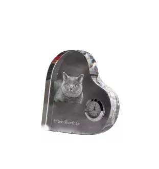 Britisch Kurzhaar - Kristalluhr mit Katzenbild, Herzregal-Uhr, personalisierte Standuhr von Art-Dog.