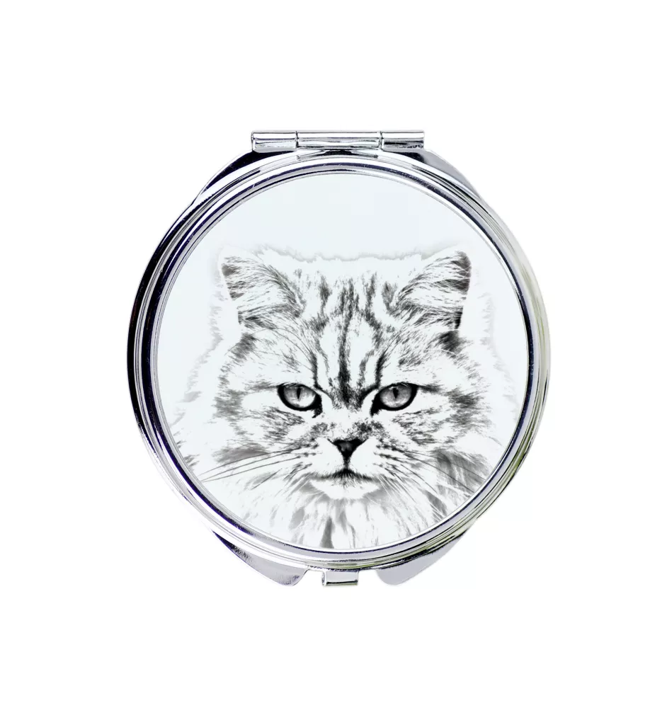 Britisch Langhaar - Taschenspiegel mit Katze, personalisierter Taschenspiegel, kompakter Spiegel mit Art-Dog-Logo