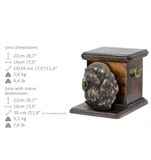 Cavalier King Charles Spaniel II - Eine Urne für die Asche eines Hundes mit einer Statuette, eine elegante Urne für einen Hund, eine außergewöhnliche Urne mit dem Porträt eines Hundes von der Marke Ar