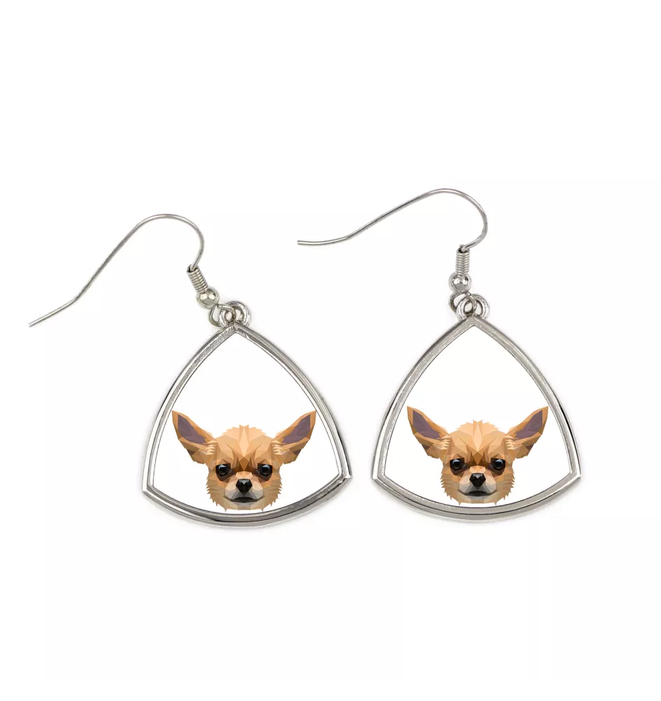Chihuahua Kurzhaar - Ohrringe mit einem Bild und dem Schriftzug "Geometrischer Hund" von Art-Dog