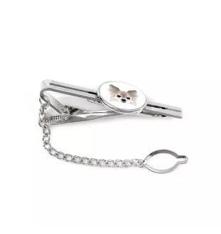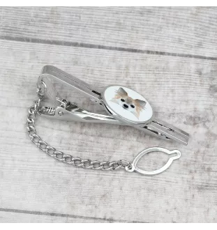Chihuahua Langhaar - geometrische Krawattennadel mit Bild und Schriftzug von Art-Dog