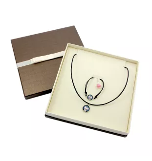 Ein einzigartiges Schmuckset mit Fotos von vierbeinigen Freunden. Es wurde von Hand mit Leidenschaft und Liebe zum Detail gefertigt.
