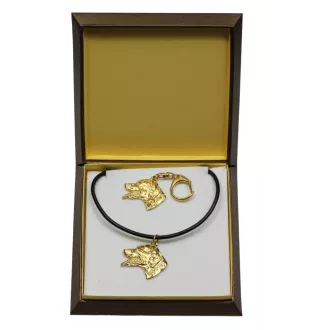 Dalmatiner, Dalmatinac - Schlüsselanhänger und Halskette mit Hund in einer Box, vergoldetes Produkt von hoher Qualität, Marke Art-Dog