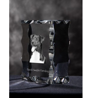 Dänisch-Schwedischer Farmhund, Dansk-Svensk Gårdshund - Kristall mit einem Hundebild, Glasstatuette mit einem Bild, einzigartiger Bilderrahmen der Marke Art-Dog
