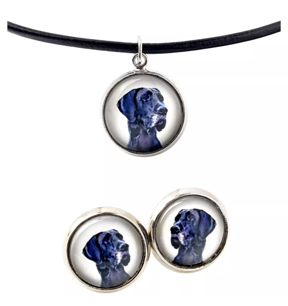 Deutsche Dogge, Ulmer Dogge, Große Dogge - Schmuck mit Ihrem Foto-Box, Halskette und Ohrringe-Set, personalisierte Produkte der Marke Art-Dog.