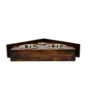 Wir präsentieren Ihnen einen handgefertigten Ständer mit zwei Schalen für Hunde, der sicherlich zu einem Schmuckstück in jedem Interieur wird. Hergestellt in Polen, besteht er aus massivem Holz, was Langlebigkeit und hohe Qualität garantiert. Der Ständer hat die lustige Form eines Hundehauses, was ihm Charme und einen einzigartigen Charakter verleiht. Verziert mit einer versilberten Flachrelief-Skulptur einer Rassehundes wird er nicht nur zu einem funktionalen, sondern auch zu einem dekorativen Element. Im Set enthalten sind zwei Edelstahlschalen, die hygienisch und leicht zu reinigen sind.