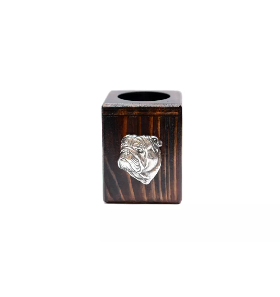 Bulldog, Englische Bulldogge III - Holzkerzenständer mit Hund, einzigartiges Andenken an den Verlust eines Hundes, Handwerkskunst der Marke Art-Dog