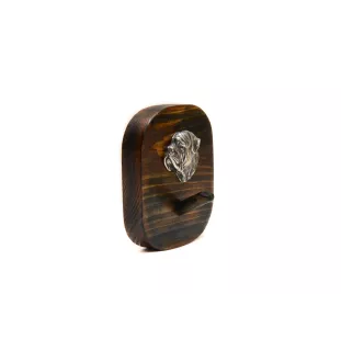 Wir präsentieren Ihnen einen einzigartigen Holz-Wandhaken mit einem Hundemotiv - handgefertigt und einzigartig als dekoratives Element, das Ihrem Interieur Eleganz und Praktikabilität verleiht. Hergestellt aus Kiefernholz, ist der Haken mit einer versilberten Flachrelief-Verzierung eines Hundes verziert, die sich durch Präzision und kunstvolle Ausführung auszeichnet. Er kann als herkömmlicher Kleiderhaken dienen, ideal für Leinen und Zubehör für Hunde sowie für auf Hundeausstellungen gewonnene Medaillen oder Schlüssel. Seine vielseitige Anwendung und elegantes Design machen ihn zu einem perfekten Geschenk für jeden Hundefreund!