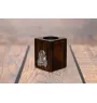 Wir präsentieren eine Kollektion von Kerzenhaltern für Liebhaber von Rassehunden. Der Kerzenhalter ist für Teelichtkerzen geeignet. Er ist aus massivem Holz gefertigt und in einer dunklen, angenehmen Farbe lackiert.