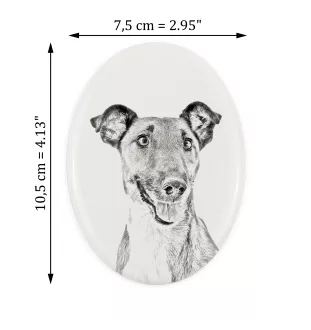 Fox Terrier Glatthaar, Foxterrier - Gedenktafel mit einem Foto eines Hundes, Grabplatte mit Druck, personalisierte ovale Platte der Marke Art-Dog