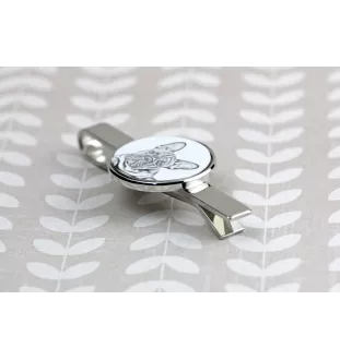 Die Krawattenklammer besteht aus Metall, das im Laufe der Zeit seine Farbe nicht ändert. Sie sind mit einer Kette zum Einhaken der Klammer am Hemdknopf ausgestattet. Sie sind mit einem einzigartigen Grafikdesign verziert, das personalisiert werden kann. Übermitteln Sie uns ein Foto Ihres Haustieres, und wir werden es drucken und somit ein einzigartiges Schmuckstück kreieren.