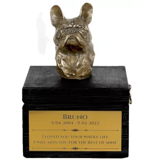 Französische Bulldogge - eine Urne mit Gravur und Hundeskulptur, letzter Abschied, handgefertigtes Produkt der Marke Art-Dog