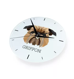 Brüsseler Griffon, Griffon Bruxellois - geometrische Wanduhr mit Bild und Aufschrift der Marke Art-Dog