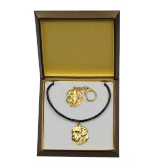 Golden Retriever - Schlüsselanhänger und Halskette mit Hund in einer Box, vergoldetes Produkt von hoher Qualität, Marke Art-Dog