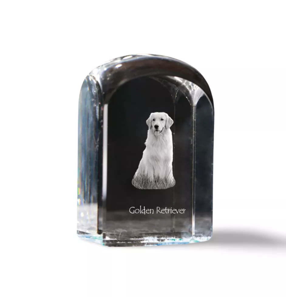 Golden Retriever - Kristallwürfel mit Bild, Hundebild im Kristall, sechseckiger Papierclip von Art-Dog.