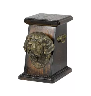 St. Bernhardshund, Bernhardiner eine Ascheurne für Hunde, eine elegante Urne mit einer Statue, eine Gedenkurne mit dem Porträt eines Hundes von der Marke Art-Dog