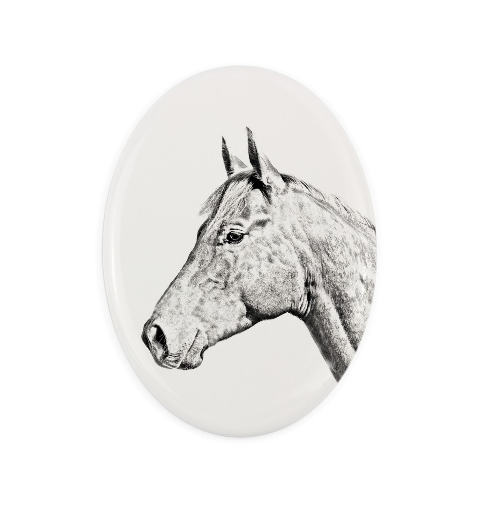 Holsteiner Pferd - Gedenktafel mit einem Pferdefoto, Grabplatte mit Druck, personalisierte ovale Platte von Art-Dog.
