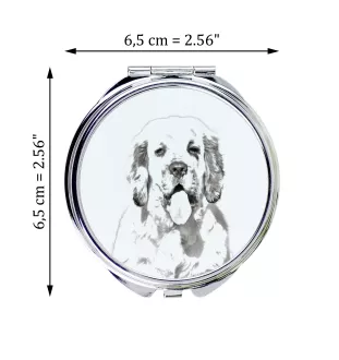 Clumber Spaniel - Taschenspiegel mit Hund, personalisierter Taschenspiegel, kompakter Spiegel mit Art-Dog-Logo