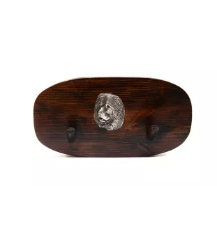 Dieser hölzerne Hundeaufhänger ist ein handgefertigtes und einzigartiges Accessoire, das sowohl Funktionalität als auch Eleganz in ein Interieur bringt. Der klassische Stil kommt in der Kombination aus Kiefernholz und dem versilberten, aufwendig gearbeiteten Relief des Hundes zum Ausdruck. Der Bügel kann als traditioneller Kleiderbügel verwendet werden, aber auch als Aufhänger für eine Leine und anderes Hundezubehör, zur Präsentation von Medaillen, die bei einer Hundeausstellung gewonnen wurden, oder als Schlüsselhaken. Seine vielseitige Verwendung spricht für sich selbst - ein wirklich praktisches Geschenk für jeden Hundeliebhaber!