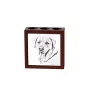 Wir präsentieren Ihnen einen einzigartigen Holzständer für Stifte, der sich perfekt auf jedem Schreibtisch macht. Dieses stilvolle Bürogadget verfügt über drei Stifthalter, die Ordnung und einfachen Zugang zu Ihren Lieblingsschreibutensilien gewährleisten. Das zentrale Element des Ständers ist eine Keramikplatte mit einem Aufdruck, den Sie vollständig personalisieren können. Wir bieten Grafiken von Hunden, Katzen und Pferden an, aber wir drucken auch gerne ein Foto Ihres Haustieres! Auf Wunsch können wir auch den Namen darauf platzieren. Das Foto kann in Farbe oder in der "Bleistiftskizze"-Version fixiert werden, wie Sie es auf den Bildern in diesem Angebot sehen.