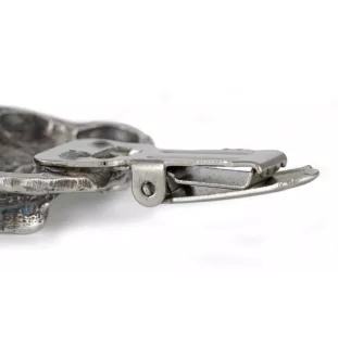 Allen Liebhabern von einzigartigen Accessoires und Hundefreunden wird sicherlich unsere versilberte Brosche mit Clip gefallen, die als Startnummernhalter dient. Diese elegante Anstecknadel mit dem Bild eines Rassehundes ist das ideale Accessoire für Sportveranstaltungen oder Hundeshows und ermöglicht eine bequeme und stilvolle Präsentation der Startnummer.