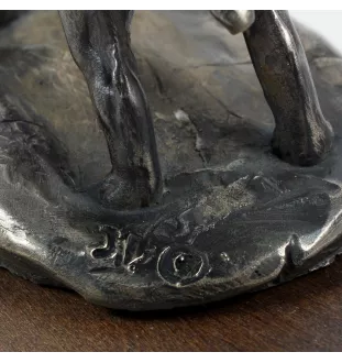 Material: Die Statuetten sind aus kaltgegossener Bronze hergestellt. Bei dieser Technik wird eine Mischung aus Bronze-Metallpulver und Epoxidharz verwendet, die in eine Silikonform gegossen wird. Der so hergestellte Guss behält das Aussehen und manchmal auch das Gewicht einer Bronzeskulptur bei und fühlt sich genauso kühl an. Kaltbronzeerzeugnisse haben den gleichen künstlerischen Wert wie Bronzeskulpturen, haben jedoch den Vorteil eines niedrigeren Preises und günstigerer Versandkosten, was vor allem beim Versand außerhalb Europas ein großer Vorteil ist.