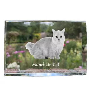 Munchkin Katze - Kristall mit einem Katzenbild, Bild im Glas, moderne Ausstellung des Art-Dog-Fotos.