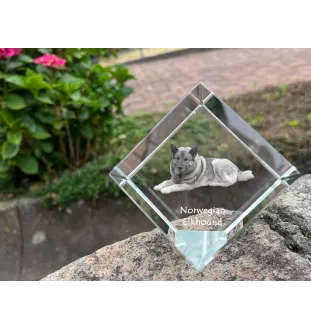Norwegischer Elchhund, Grahund, Norwegian Elkhound - Kristallwürfel mit Bild, Pferdebild im Kristall, sechseckiger Papierclip der Marke Art-Dog