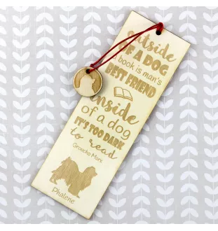 Das Lesezeichen kann personalisiert werden - anstelle der Hunderasse können wir den Namen Ihres Haustieres eingravieren!