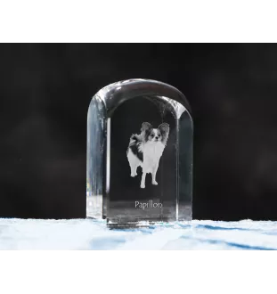 Papillon, Kontinentaler Zwergspaniel - Kristallwürfel mit Bild, Hundebild im Kristall, sechseckiger Papierclip von Art-Dog.