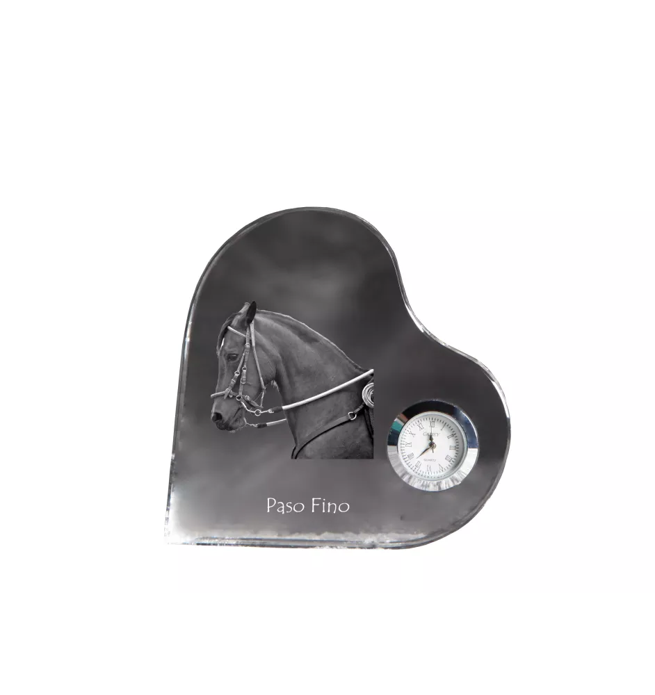 Paso Fino - Kristalluhr mit einem Pferdebild, Herzregal-Uhr, personalisierte Standuhr der Marke Art-Dog