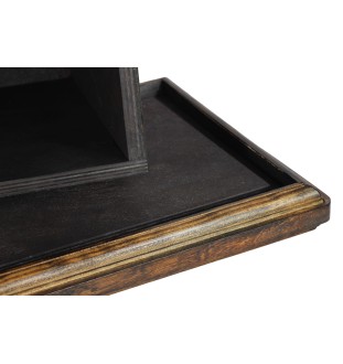 Material: massives Birkenholz, Birkenholzsperrholz; das Hundebild ist aus einer Zink-Aluminium-Legierung gefertigt und mit einer Silberschicht überzogen.