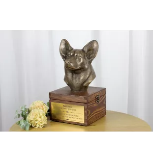 Pembroke Welsh Corgi - Eine Ascheurne für Hunde mit einer Statuette, eine kleine Urne für Hunde, eine personalisierte Urne mit dem Porträt eines Hundes von der Marke Art-Dog.
