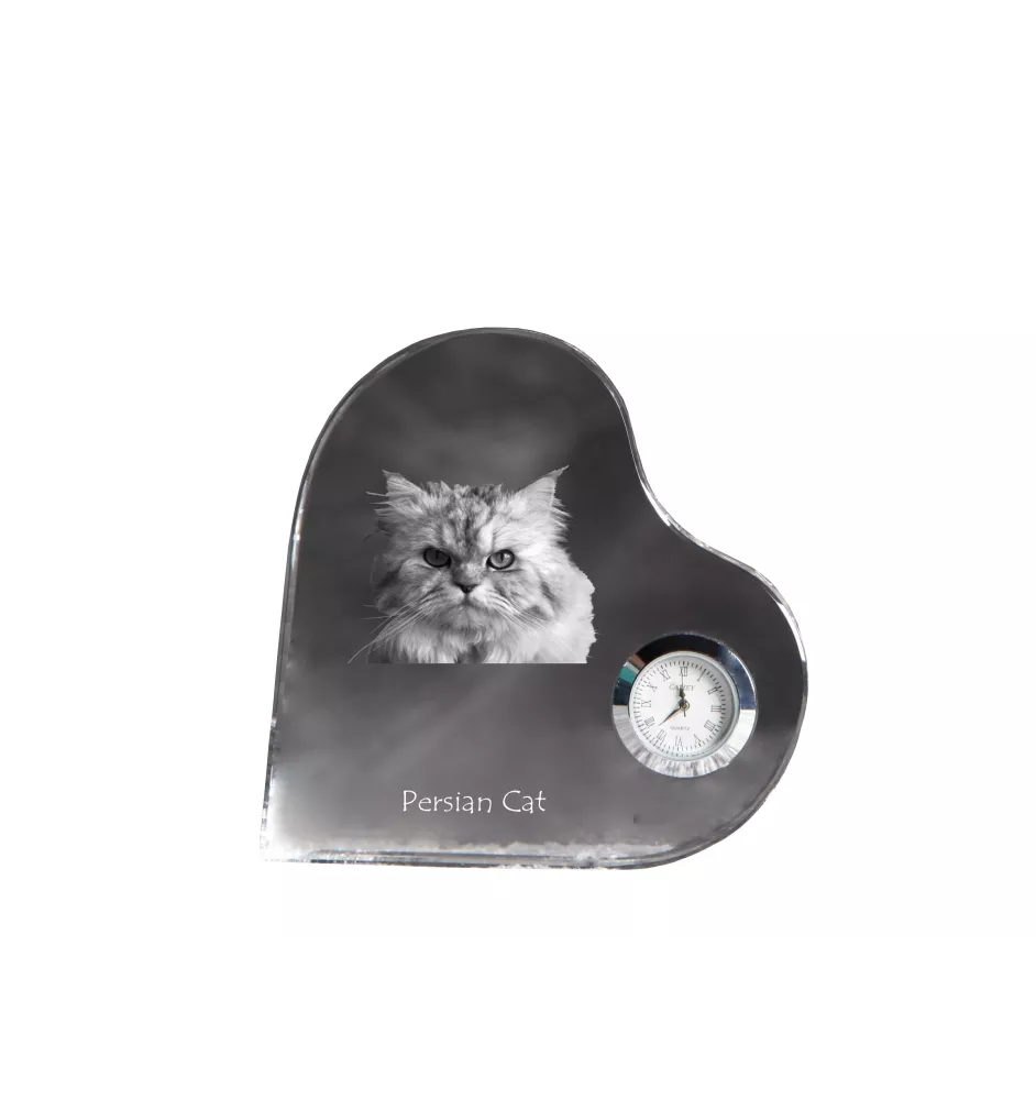 Perserkatze - Kristalluhr mit Katzenbild, Herzregal-Uhr, personalisierte Standuhr von Art-Dog.