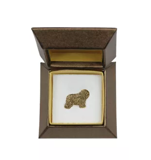 Polnischer Niederungshütehund, PON I - Hundebrosche in dekorativer Box, elegante vergoldete Anstecknadel, Jackenbrosche der Marke Art-Dog