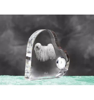 Puli - Kristalluhr mit einem Hundebild, Herzregal-Uhr, personalisierte Standuhr der Marke Art-Dog