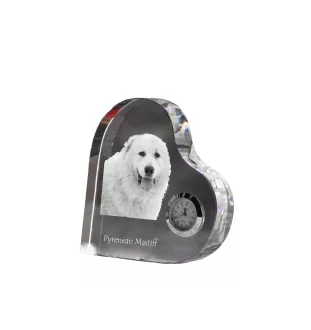 Pyrenäen-Mastiff, Mastín del Pirineo - Kristalluhr mit einem Hundebild, Herzregal-Uhr, personalisierte Standuhr der Marke Art-Dog