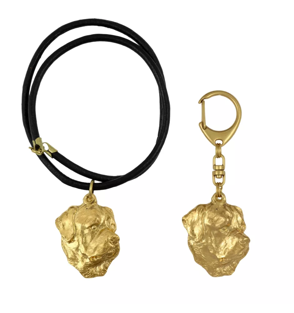 Rottweiler I - Schlüsselanhänger und Halskette mit Hund in einer Box, vergoldetes Produkt von hoher Qualität, Marke Art-Dog
