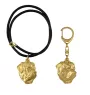 Dieser Schlüsselanhänger mit einem Halsband in Form eines niedlichen Hundegesichts ist die perfekte Ergänzung für jeden Hunde-Liebhaber. Hergestellt in Polen mit höchster Qualität und Sorgfalt, garantiert er Langlebigkeit und Zuverlässigkeit für Jahre. Er verfügt über einen klassischen Schlüsselring für einfache Befestigung von Schlüsseln. Das Halsband hat eine Länge von ca. 50 cm. Unsere Schlüsselanhänger und Halsbänder werden von einem polnischen Künstler entworfen und hergestellt, der darauf geachtet hat, die charakteristischen Merkmale der Rasse wiederzugeben. Der Metall-Schlüsselanhänger ist mit 18 Karat Gold überzogen und verleiht Eleganz und Stil. Er kann auch mutig als Taschen- oder Rucksackdekoration verwendet werden.